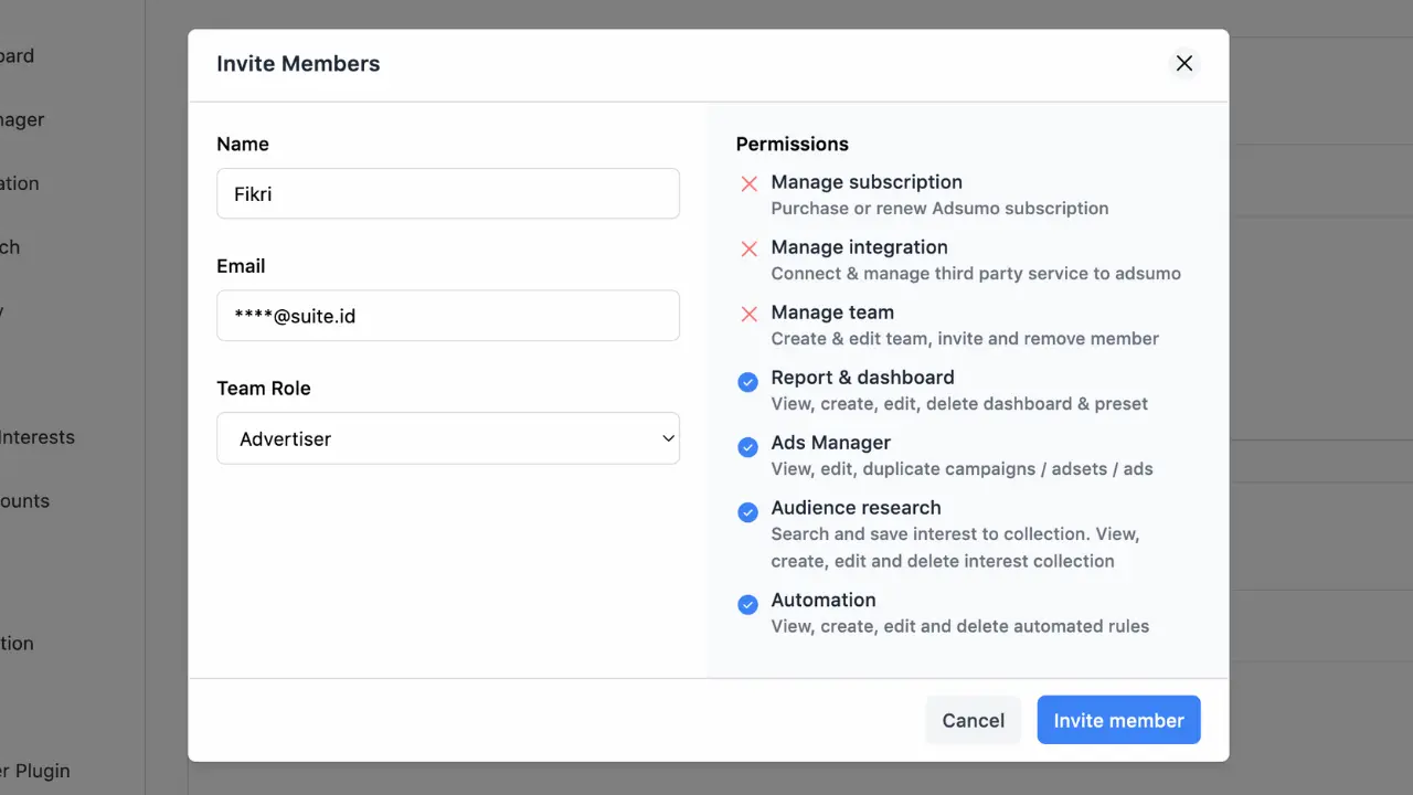 Seperti pada Business Manager, Anda pun bisa memberikan role dan permission untuk setiap anggota tim Anda. Siapa yang bisa konten, siapa yang bisa mengelola tim, siapa yang boleh mengedit campaign, dsb